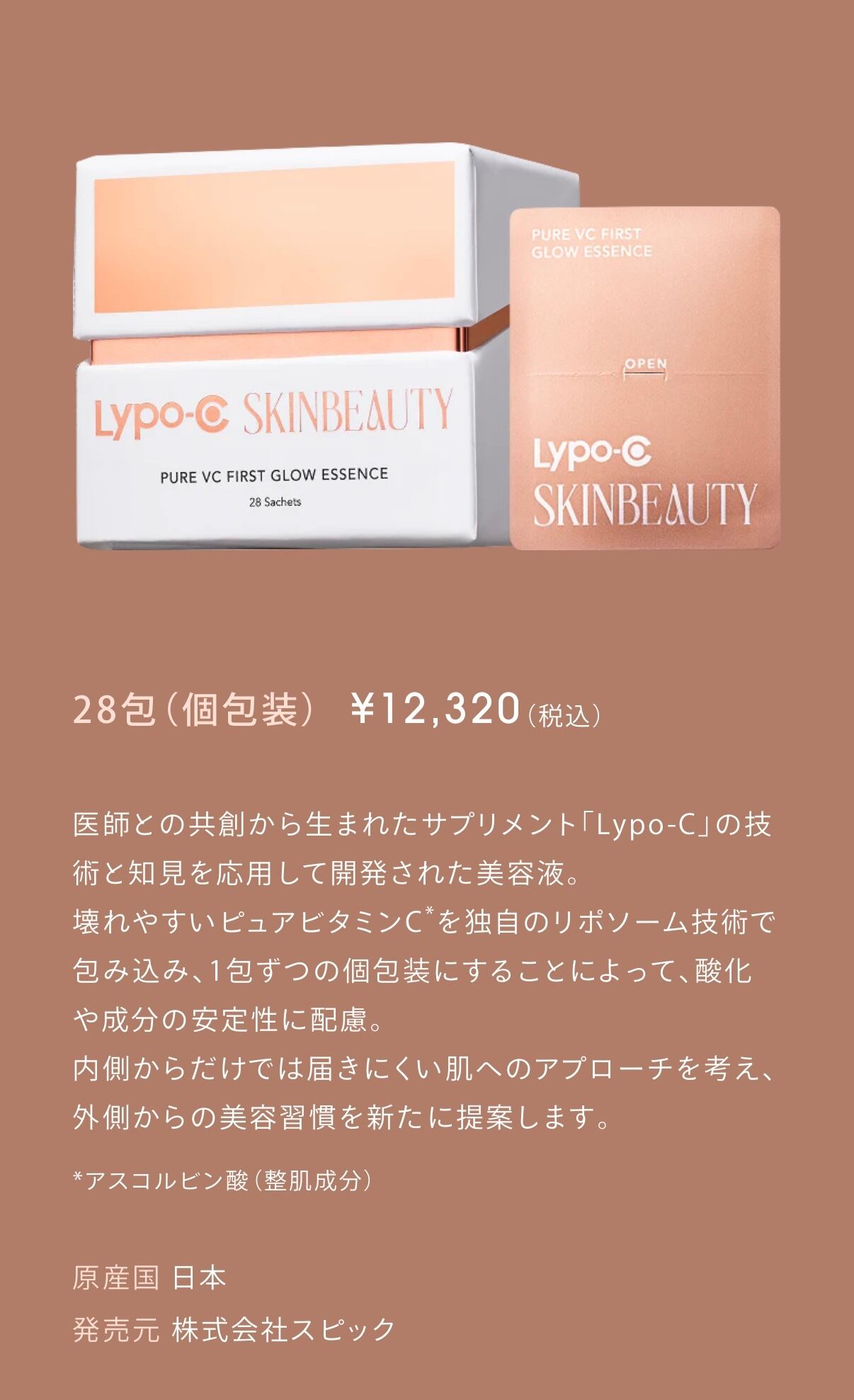 医師との共創から生まれたサプリメント「Lypo-C」の技術と知見を応用して開発された美容液。